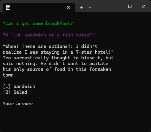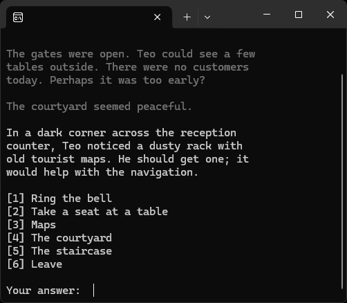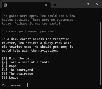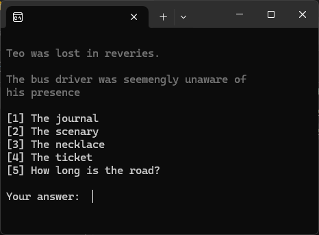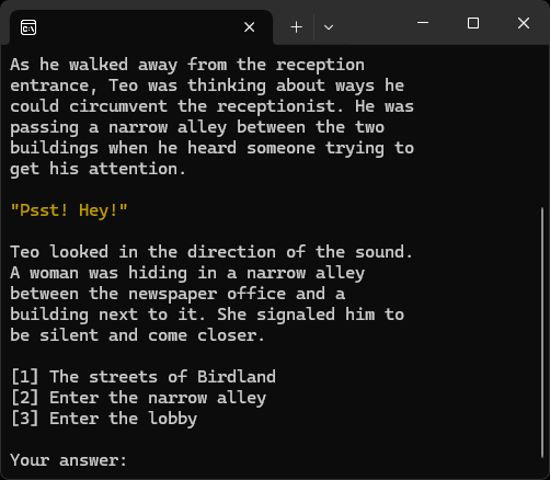 Birdland is a text-based game developed as an exercise in pure C++ and creative writing. All feedback is welcome!
